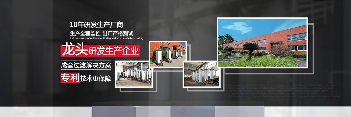 成都愛爾純凈化設備有限公司,坐落于美麗的天府之國,成都市溫江區(qū)海峽科技園工業(yè)區(qū),專業(yè)從事于過濾、凈化技術的研發(fā)應用,產(chǎn)品有保健酒過濾設備、白酒過濾設備、白酒凈化設備、水凈化設備等,公司引進世界先進過濾分子技術,結合專業(yè)技術人員資深多年實踐經(jīng)驗,解決酒類、飲水類后期處理難題。 業(yè)務涵蓋,酒類過濾:除混濁沉淀,澄清處理、除苦味,異雜味,新酒催熟陳化處理 、除塑化劑、固形物、雜醇油、甲醇及各類含量超標后期處理。 水類:軟水、純凈水、礦泉水、飲料等凈化處理。用心為客戶提高生產(chǎn)效率、提高產(chǎn)品質(zhì)量、降低生產(chǎn)成本、環(huán)保減排而開發(fā)創(chuàng)新,堅持奮斗。 公司至誠每一位客戶,“誠信服務,客戶至上”為宗旨,為客戶要求,用心凈化每一點滴,我們都將以精準的數(shù)據(jù)化設計、嚴格的設備制作質(zhì)量把關、快捷專業(yè)的安裝調(diào)試以及周到的售后服務,解決客戶生產(chǎn)過程中遇見的各種酒、水后期處理的技術難題。